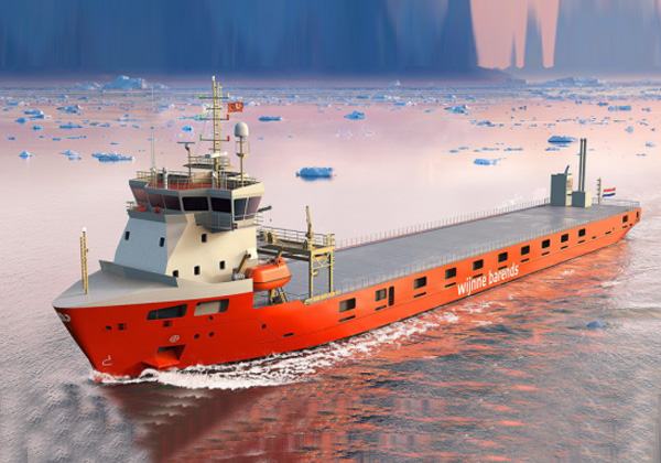 該船船長115.2米,型寬16.5米,型深8.5米,吃水6.20米,設(shè)計(jì)航速約14.0節(jié);動力系統(tǒng)采用LNG、燃油雙燃料推進(jìn),符合1AFS冰區(qū)及-30℃環(huán)境溫度條件下正常航行。